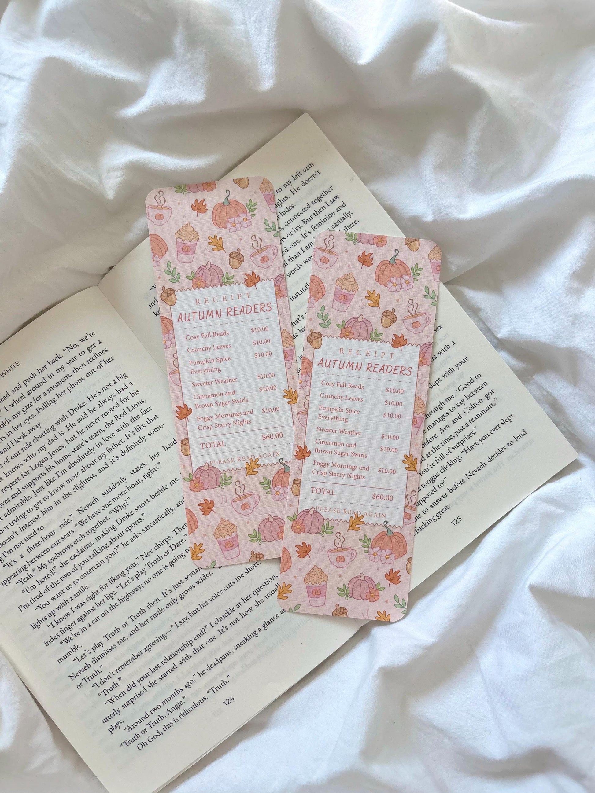 ♡ A cosy autumn readers receipt bookmark. The perfect bookmark for any book lover!