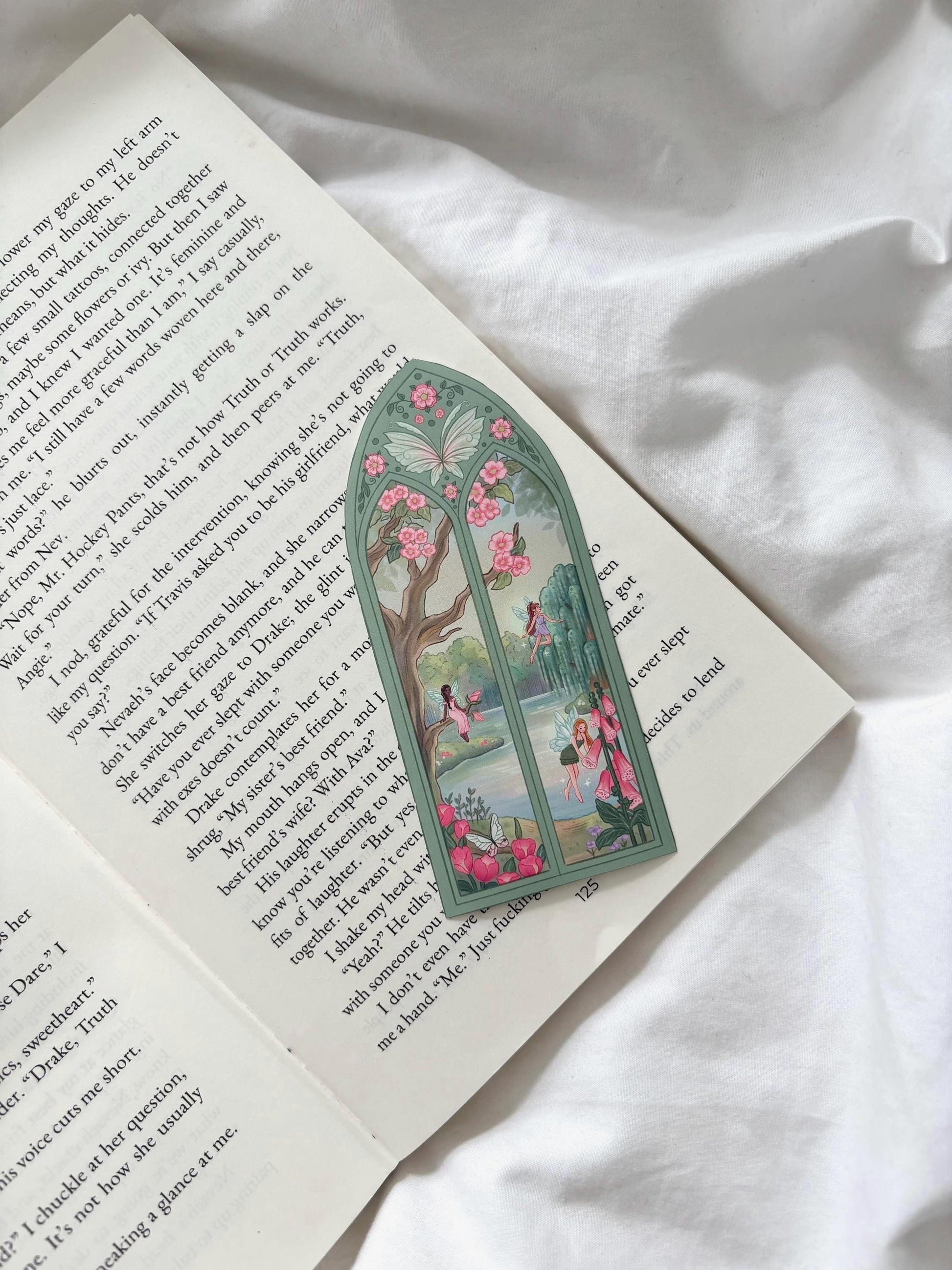♡ A magical flower fairy arched window matte vinyl sticker. The perfect sticker for any reader & fairy lover!
