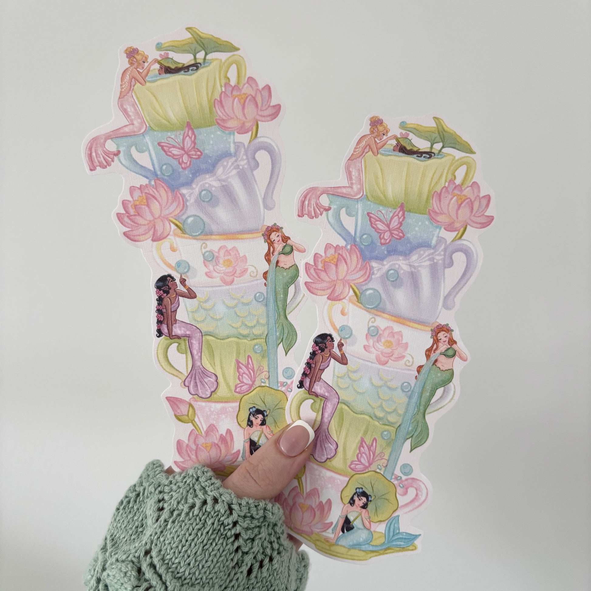 ♡ A magical & whimsical mermaid teacup stack bookmark. The perfect bookmark for any mermaid & book lover!