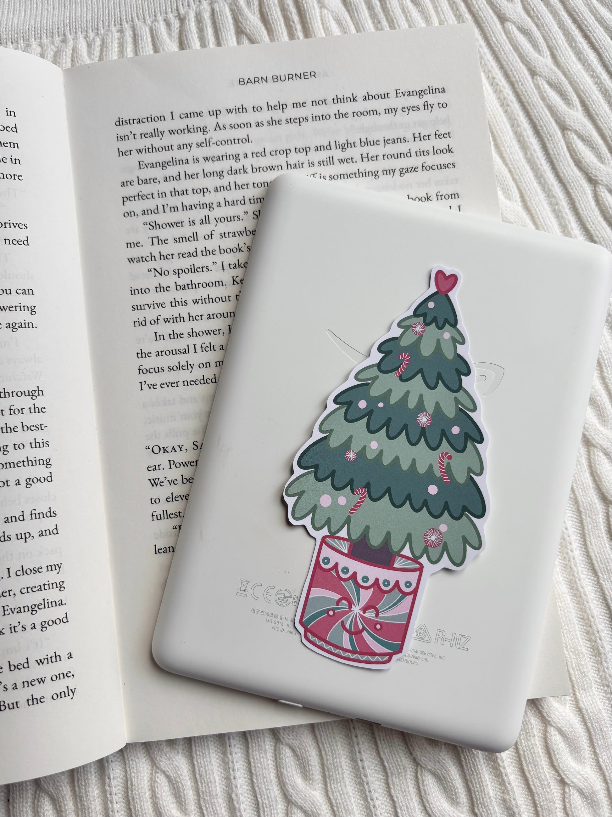 ♡ A happy peppermint Christmas tree matte vinyl sticker. The perfect sticker for any reader & Christmas lover!